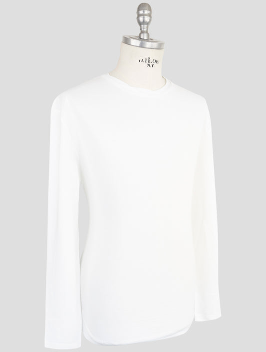 Kiton KNT White Cotton Crewneck Sweater - Handmade Italian Premium