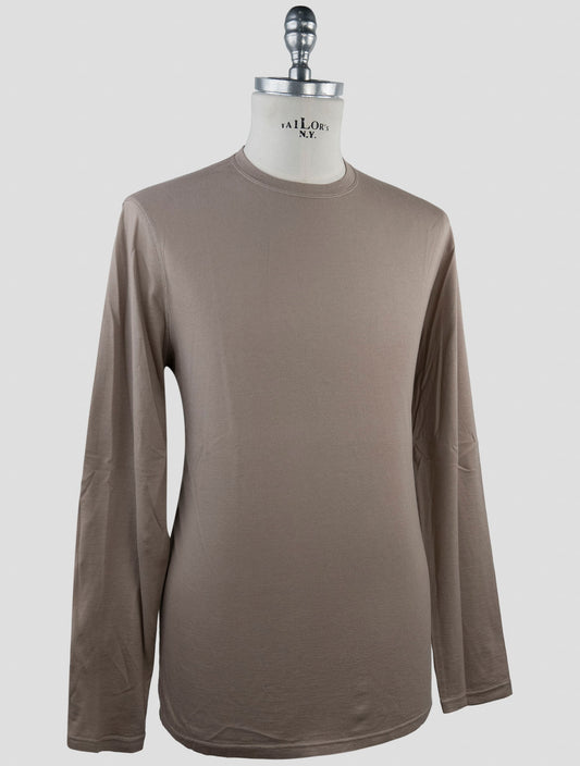 Kiton Handmade Cotton Cashmere Crewneck Sweater Taupe Italian