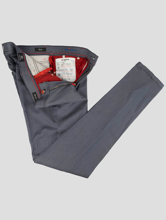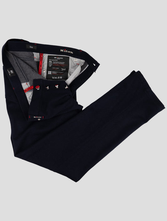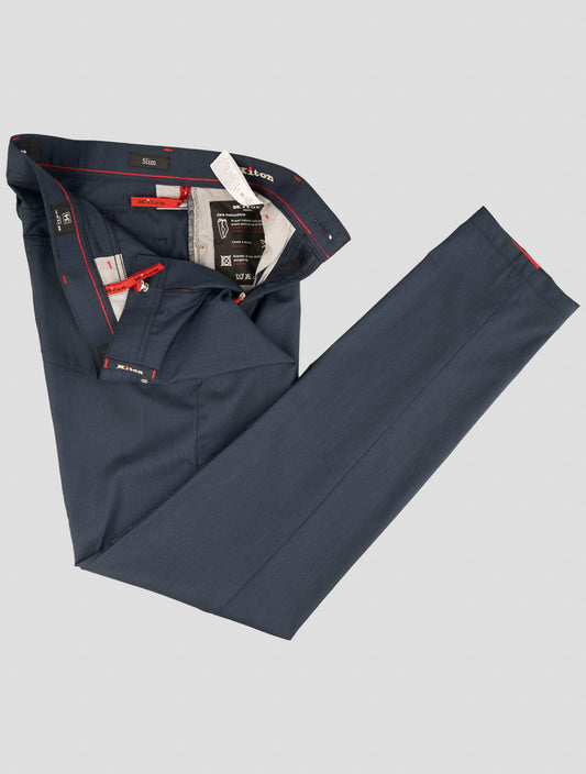Kiton Blue Wool Cotton Dress Pants - Handmade Italian Trousers