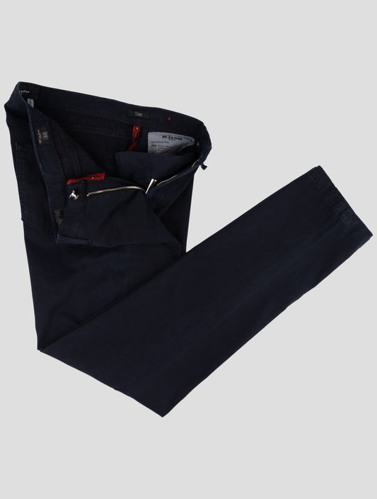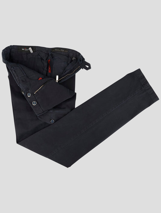 Kiton Blue Cotton Stretch Pants - Italian Tailored Trousers