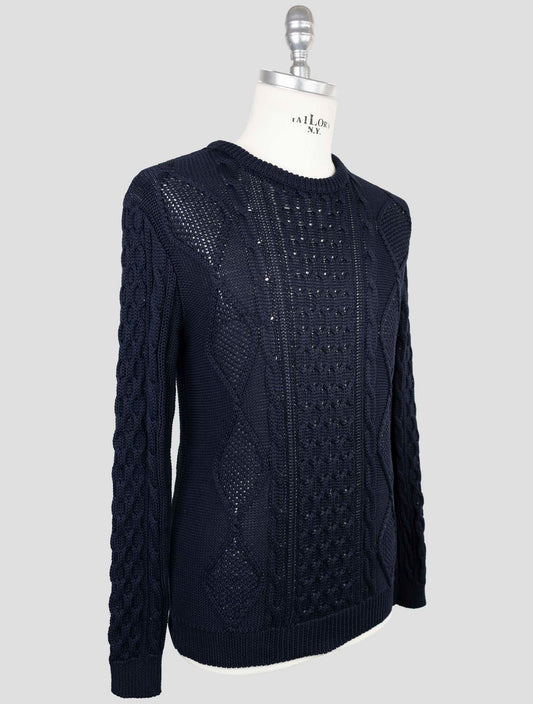 Kiton Blue Cotton Crewneck Sweater - Italian Handmade Luxury