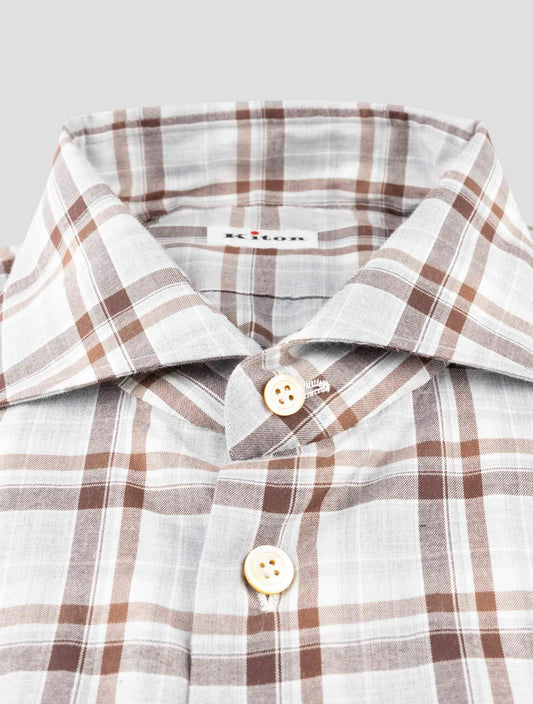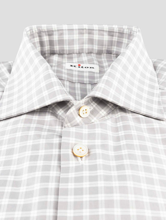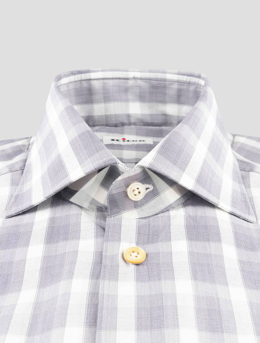 Kiton Gray Plaid Cotton Shirt - Handmade Italian Regular Fit