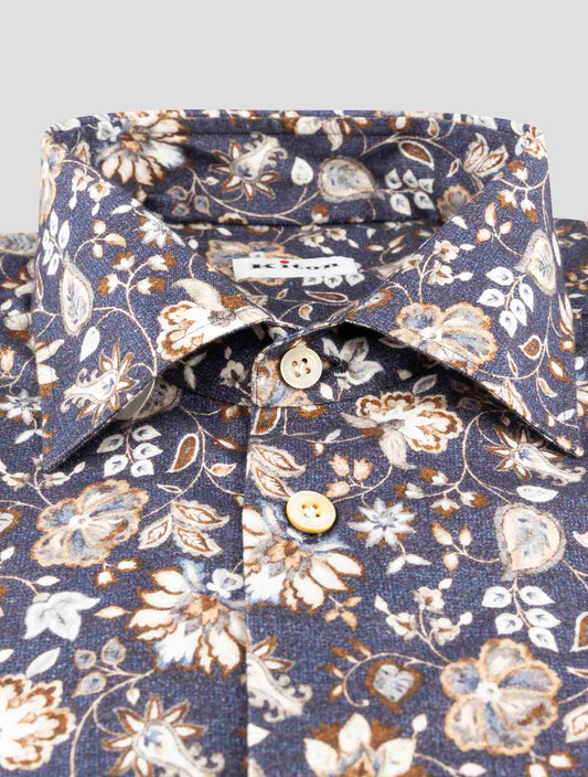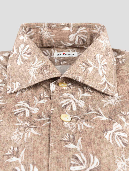 Kiton Brown Cotton Floral Shirt - Handmade Italian Regular Fit
