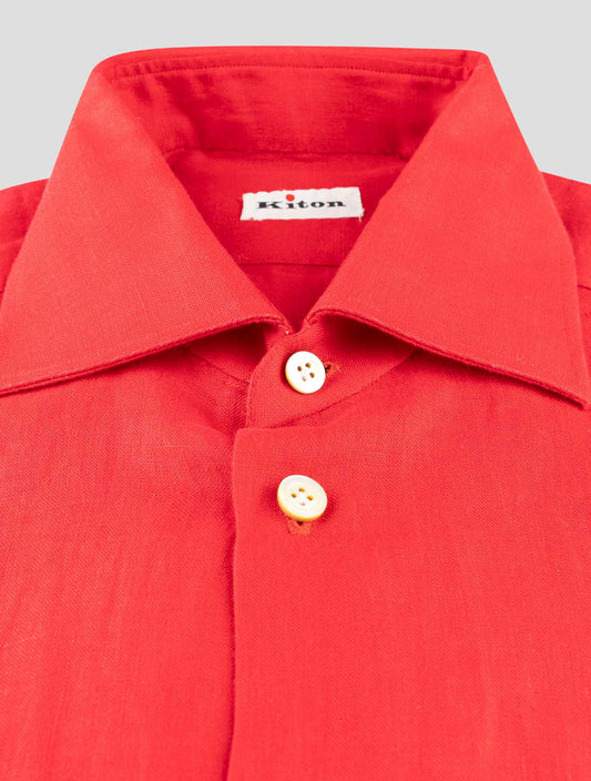 Kiton Red Linen Shirt - 100% Handmade Italian Premium