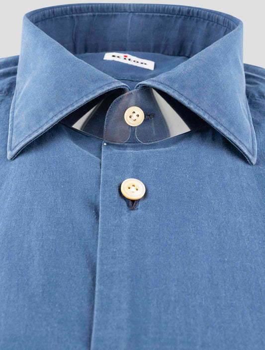 Kiton Blue Cotton Dress Shirt - Handmade Italian Regular Fit