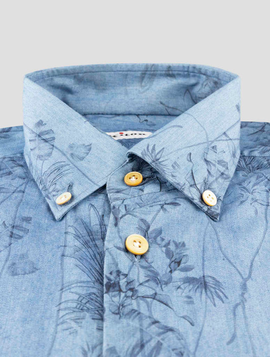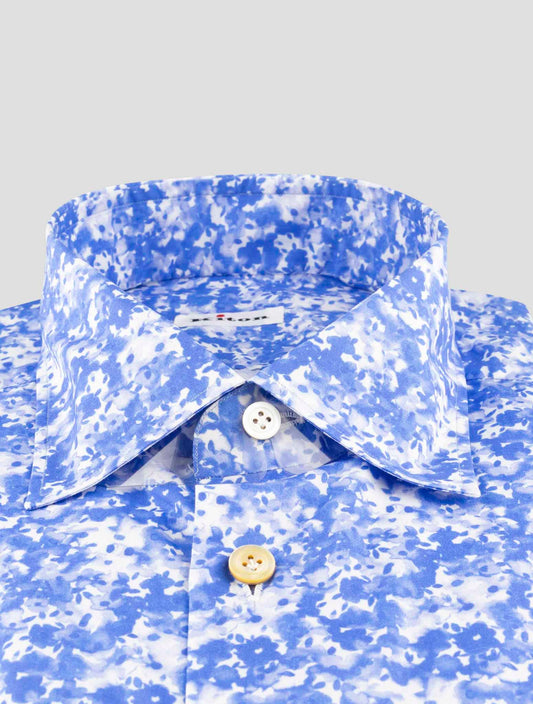 Kiton Blue Cotton Dress Shirt - Handmade Italian Floral Regular Fit