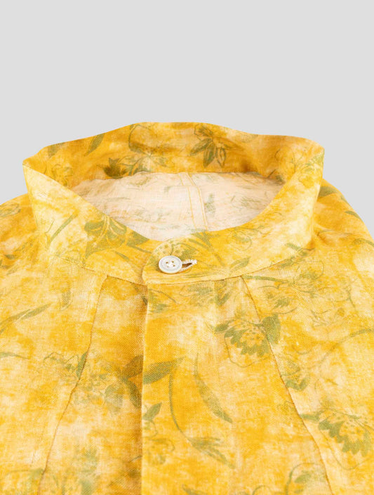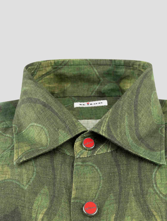 Kiton Premium Green Linen Shirt - Handmade Italian Floral