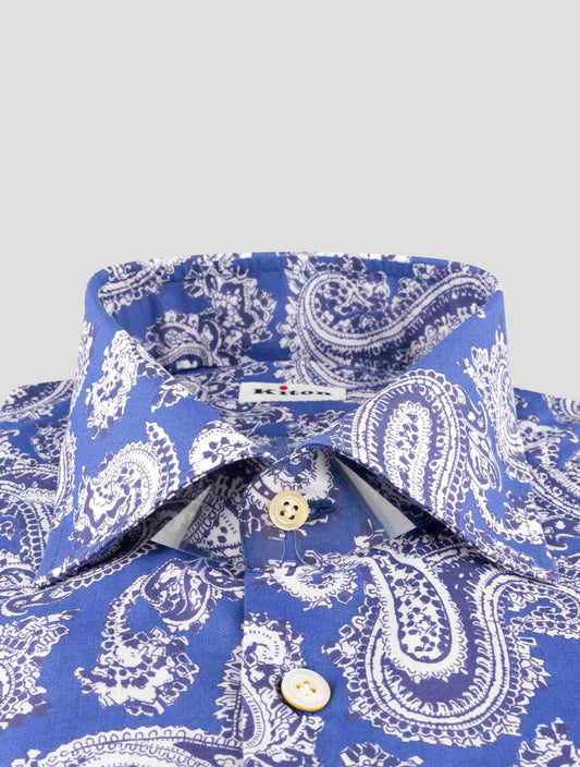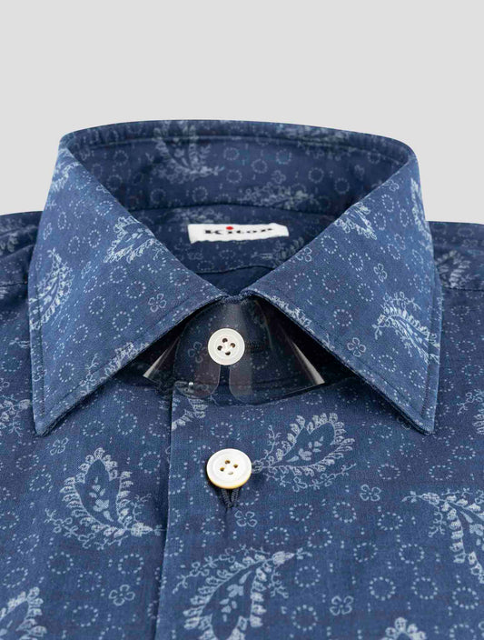 Kiton Handmade Cotton Paisley Dress Shirt Blue White Italian