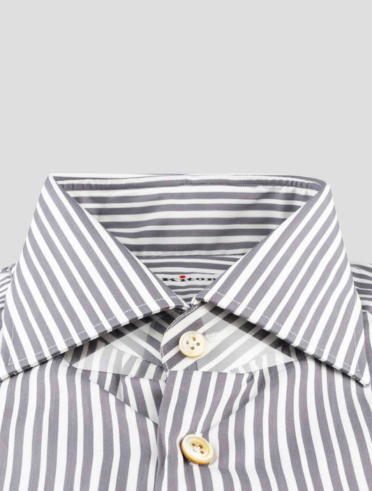 Kiton Handmade Cotton Striped Dress Shirt Gray Italian Premium
