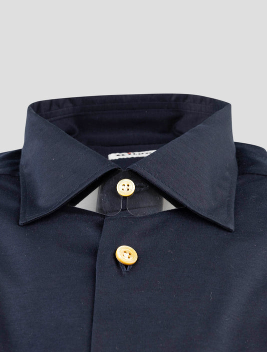 Kiton Blue Cotton Dress Shirt - Handmade Italian Regular Fit