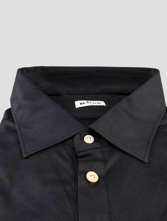 Kiton Black Cotton Dress Shirt - Handmade Italian Regular Fit