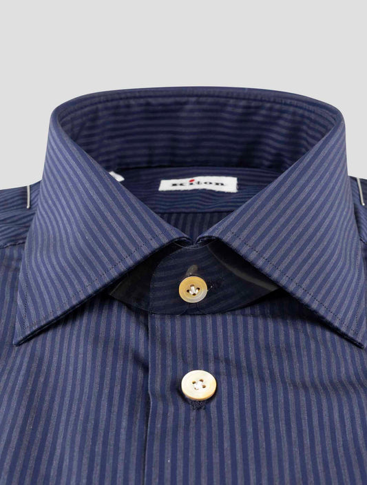 Kiton Premium Blue Gray Striped Cotton Dress Shirt Italian Made