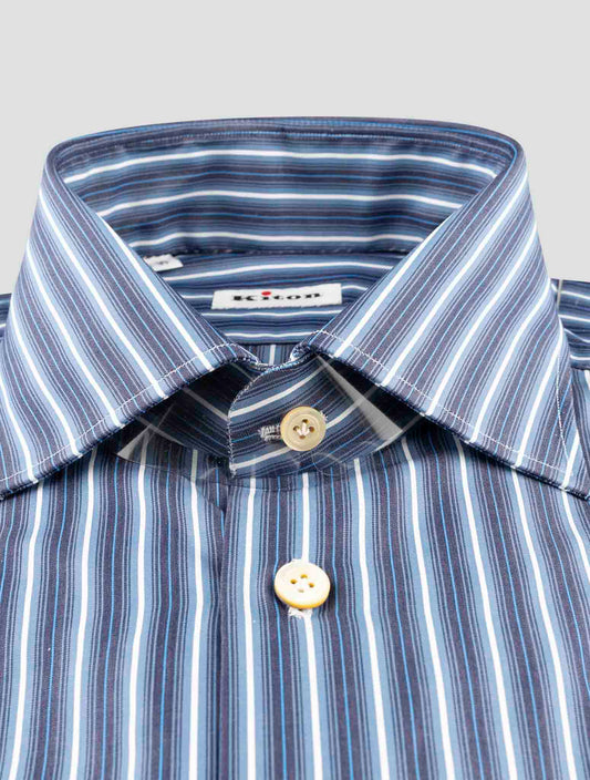 Kiton Premium Cotton Striped Dress Shirt Blue White Handmade Italy