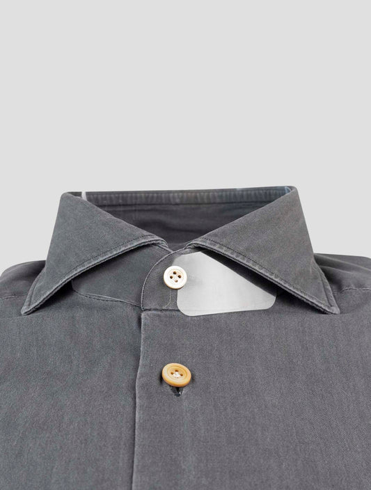 Kiton Handmade Cotton Shirt Dark Gray Regular Fit Italian