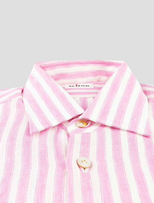 Kiton Handmade Linen Striped Shirt Pink White Men's Italian