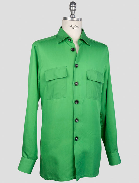 Kiton Grünes Lyocell Viskose Seidenhemd