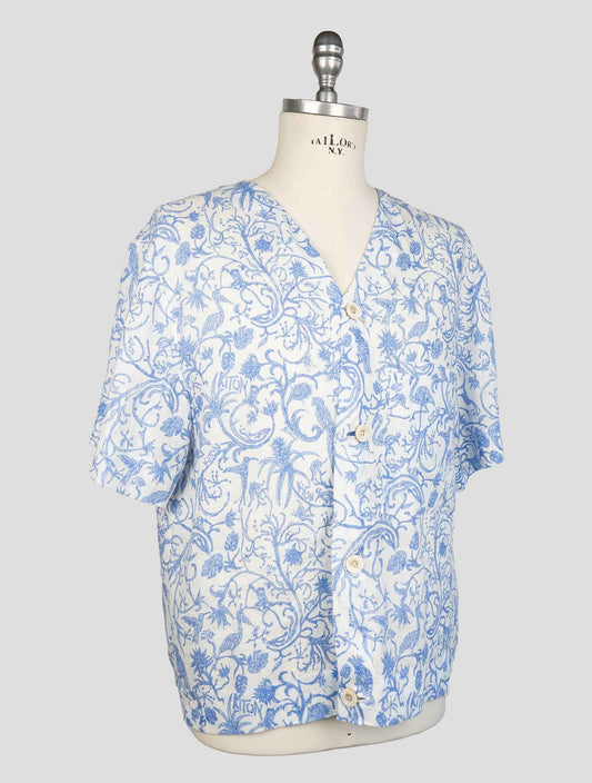 Kiton Kurzarmhemd in Blau und Weiß aus Leinen