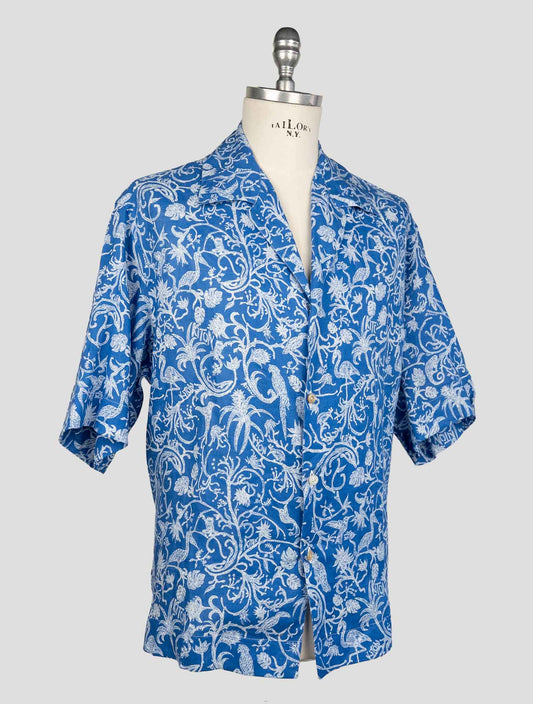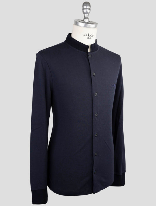 Kiton KNT Blue Cotton Silk Korean Collar Shirt - Italian Made