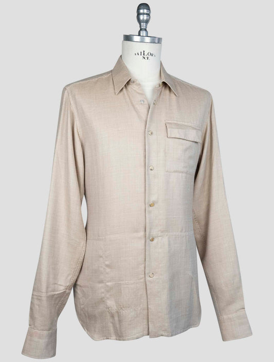 Kiton Herrenbeige Cashmere Seide Leinen Hemd