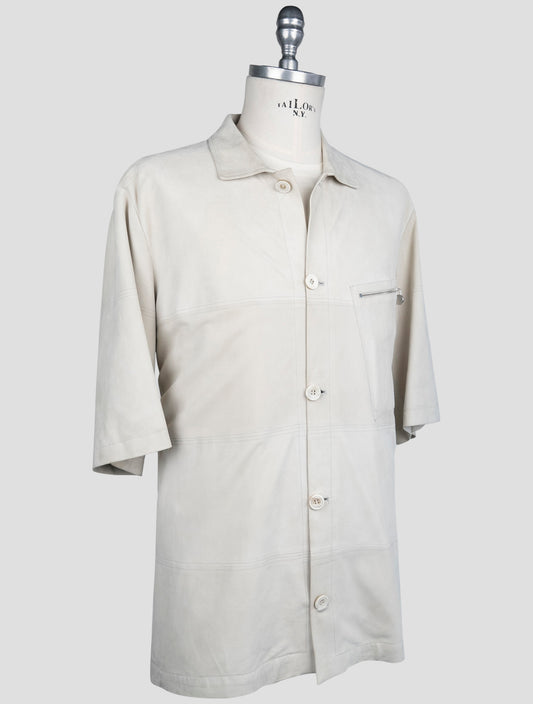 Kiton Beige Leder Wildleder Kurzarmhemd für Herren