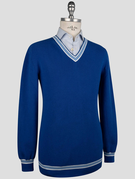 Kiton Blauer Baumwollpullover mit V-Ausschnitt