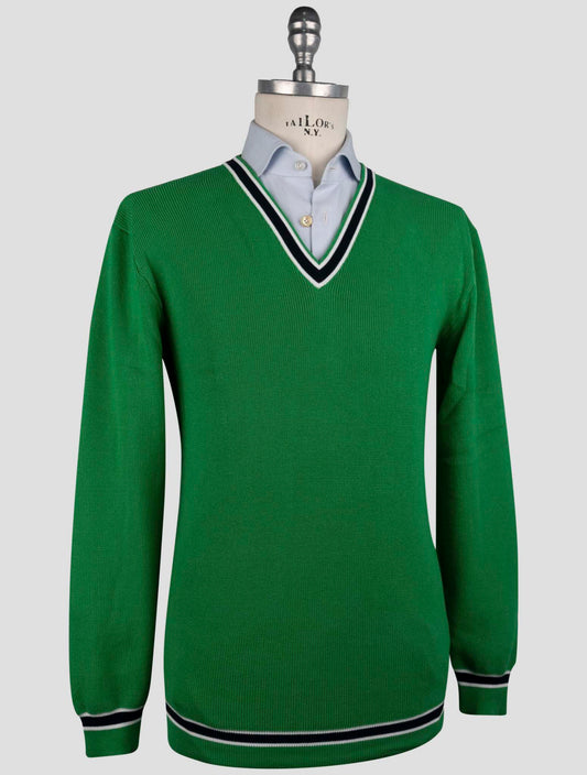 Kiton Grüner Baumwollpullover mit V-Ausschnitt