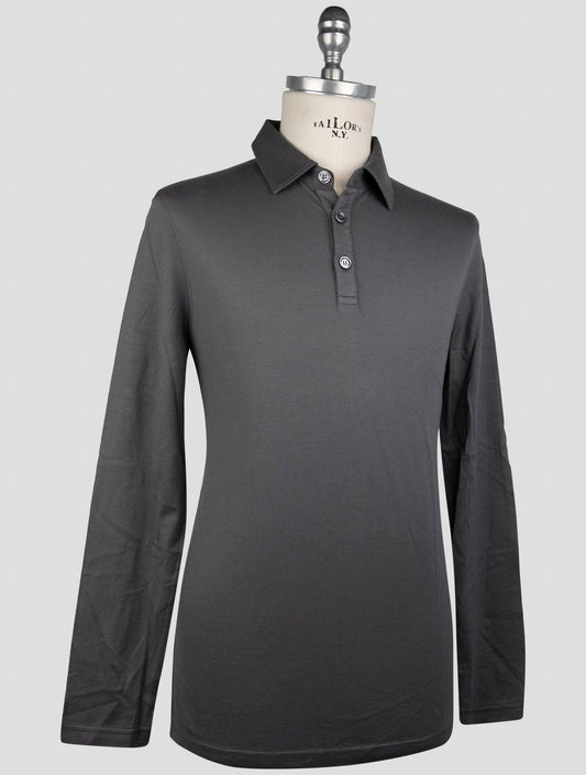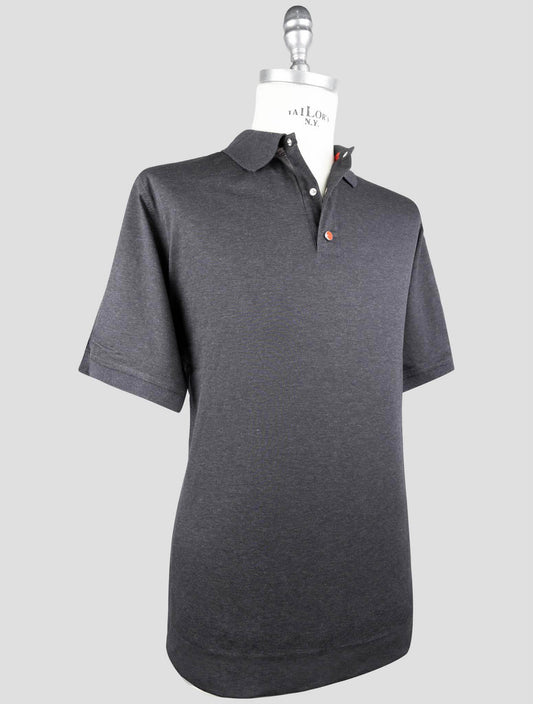 Kiton Grauer Baumwoll-Kaschmir-Polo-Sweater