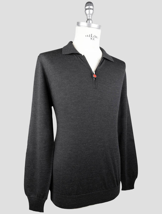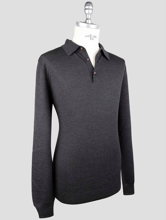 Kiton Dunkelgrauer Woll-Polo-Pullover