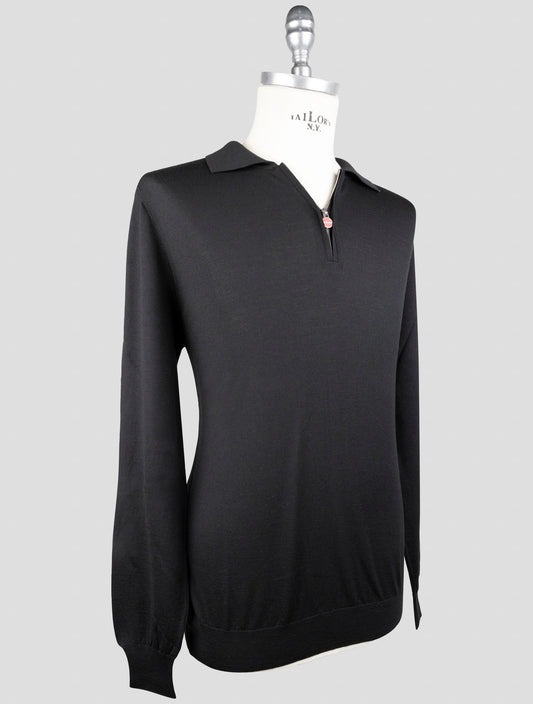 Kiton Schwarzer Baumwoll-Kaschmir-Pullover Polo
