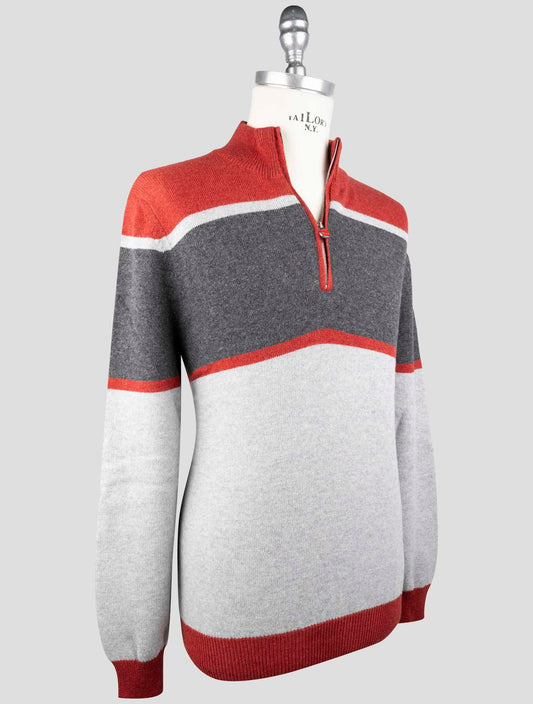 Kiton Mehrfarbiger Cashmere Pullover mit Halbreißverschluss