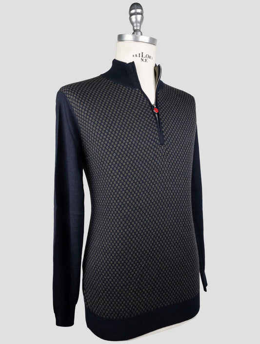 Kiton Blauer Baumwoll-Kaschmir-Pullover mit Reißverschluss