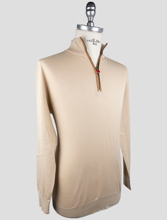 Kiton Beiger Baumwollpullover mit halbem Reißverschluss