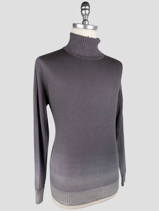 Kiton Grauer Cashmere-Seidenpullover mit Rollkragen