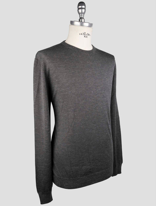 Kiton Grauer Seiden-Kaschmir-Leinen Pullover mit Rundhalsausschnitt