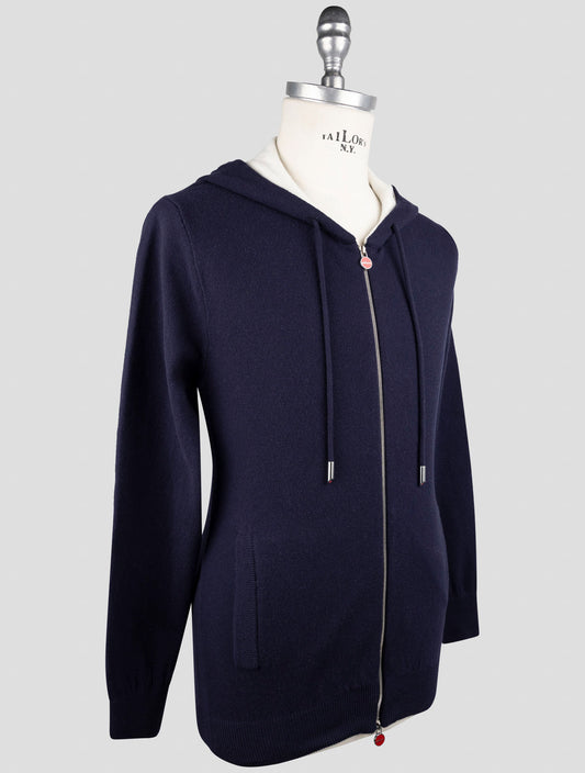 Kiton Blauer Baumwoll-Kaschmir-Pullover mit vollem Reißverschluss