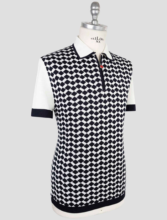 Kiton Blau Weißer Seiden-Baumwoll Polo mit Halbreißverschluss