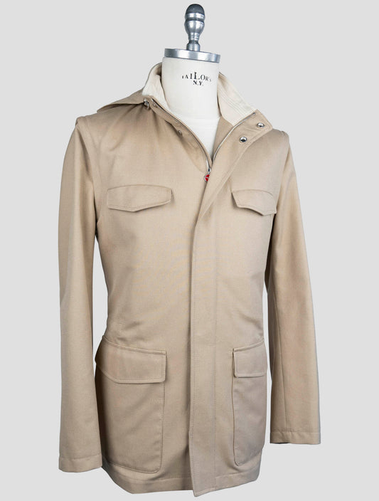 Abrigo de Algodón Beige para Hombre Kiton con Cierre Completo y Clip