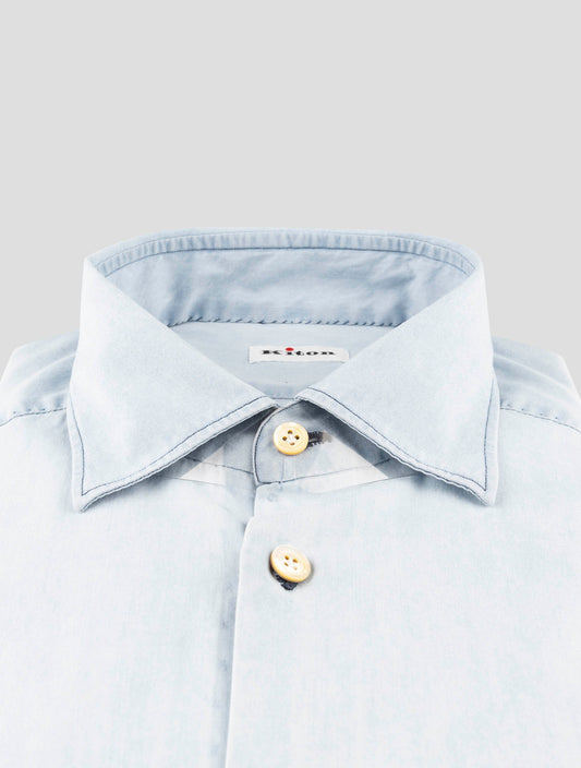 Kiton Blue Cotton Shirt - 100% Handmade Italian Dress Shirt