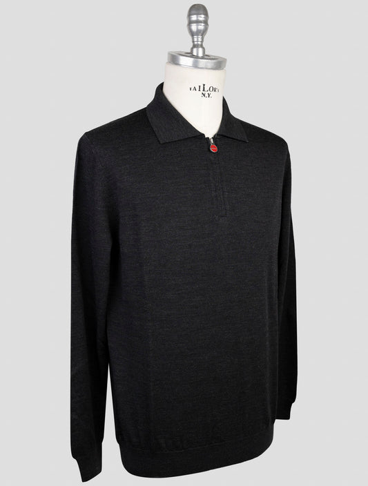 Kiton Premium Cashmere Silk Polo Sweater Black Italian