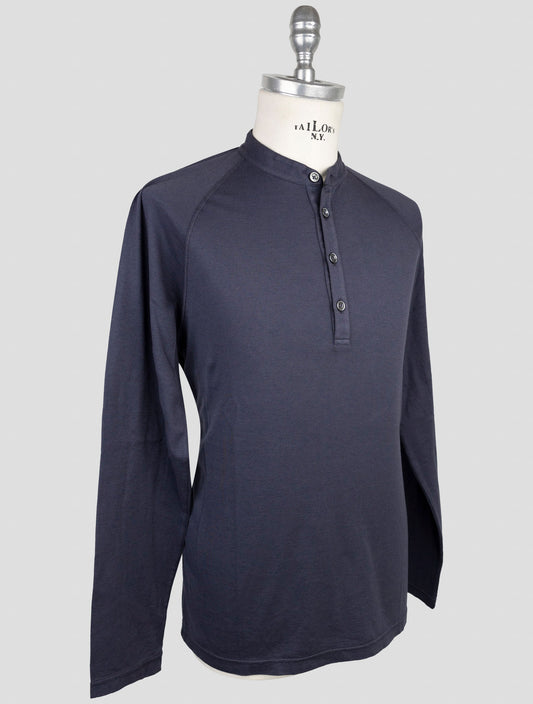 Kiton Blue Cotton Cashmere Sweater Polo Corean Collar