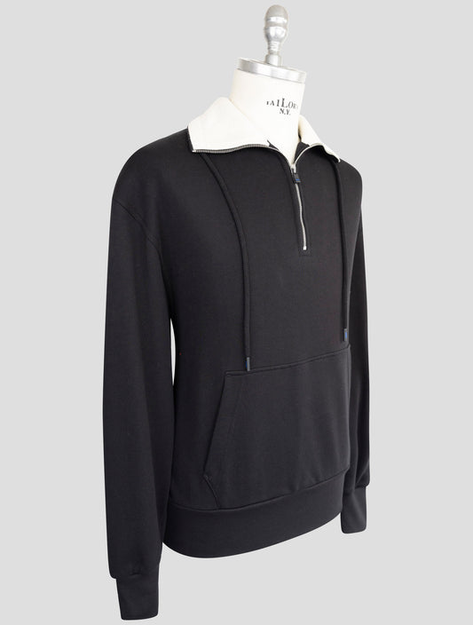Kiton KNT Premium Black Cotton Half-Zip Sweater - Italian