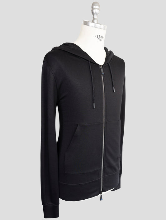 Kiton KNT Premium Black Cotton Full Zip Sweater - Italian Luxury