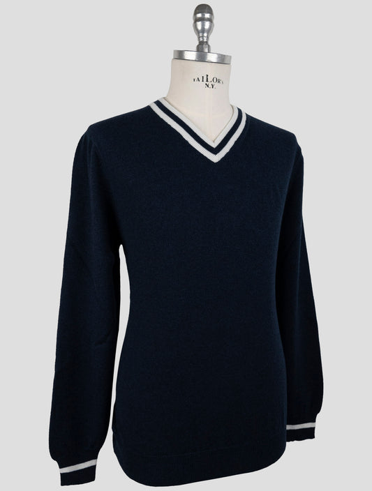 Suéter de Cachemira Azul V-Neck Kiton