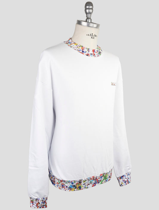 Kiton KNT White Cotton Crewneck Sweater - Handmade Italian