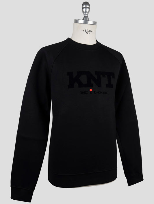 Kiton KNT Black Cotton Crewneck Sweater - Handmade Italian