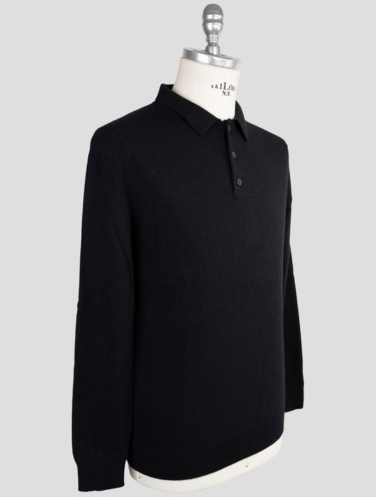 Kiton KNT Black Virgin Wool Polo Sweater - Italian Crafted