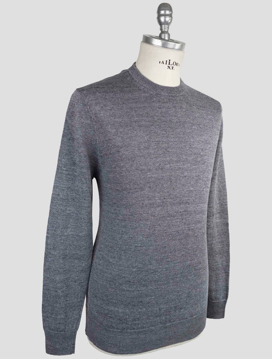 Kiton KNT Gray Linen Cotton Crewneck Sweater - Italian Made