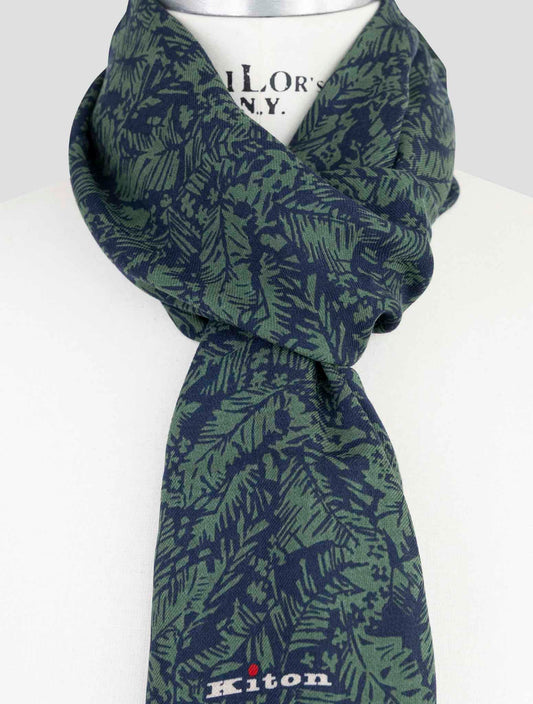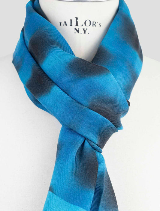 Kiton Handmade Wool Cashmere Silk Scarf Gray Blue Premium Italian
