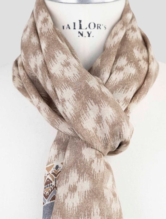 Kiton Pure Cashmere Scarf Beige White Handmade Italian Winter