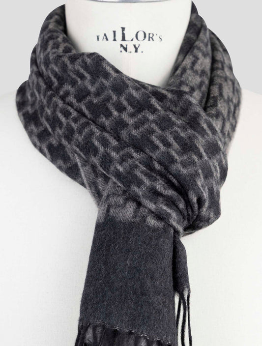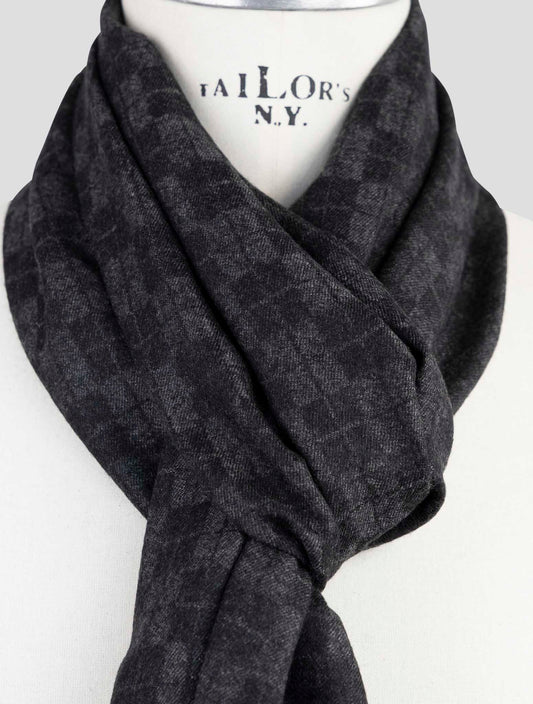Kiton Gray Cashmere Scarf - Handmade Italian 37x180cm Geometric